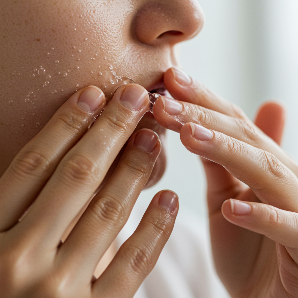 - 부드럽게 마사지하기: 절대 힘주어 문지르지 마세요. 피부에 가해지는 물리적인 마찰을 최소화하는 것이 핵심입니다.