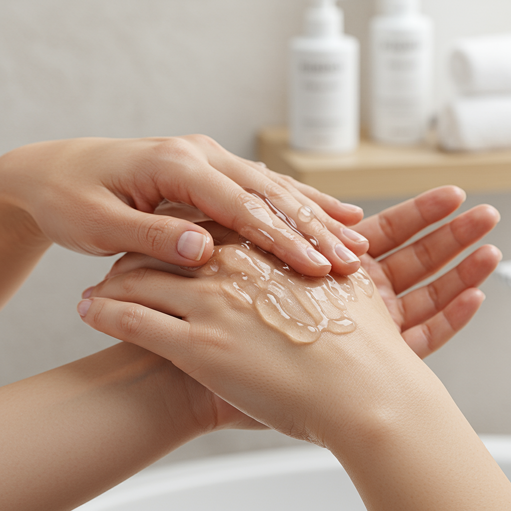 적정량 도포 및 부드러운 마사지 방법 (마찰 최소화 강조)